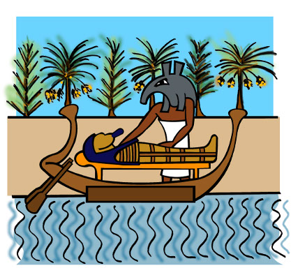 Isis junto a su hijo Horus comenzó de nuevo la búsqueda, montada en una barca de papiros fue reuniendo los pedazos.