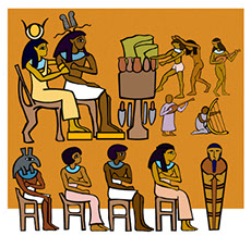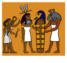 Osiris fue un buen rey que gobernó con prudencia según Ma´at, el principio rector del bien, el orden y la verdad. Enseñó a los hombres a labrar los campos y a rezar a los dioses y la prosperidad acompañó su gobierno. Pero eso mismo puso celoso a su hermano Seht, el irascible que provoca las tormentas en el desierto. Tramó un plan para hacer desaparecer a Osiris y, tomando en secreto sus medidas, construyó un bello sarcófago y, en medio de una fiesta, invitó a los comensales a probar a cuál le ajustaba mejor el cofre.
